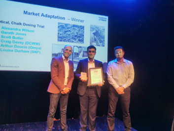 • Winner: Optical, Chalk Dosing Trial By Alexandra Wilson, Gareth Jones, Scott Butler, Craig Davey of Dŵr Cymru, Arthur Doucin of Omya & Louise Durham of SNF.
